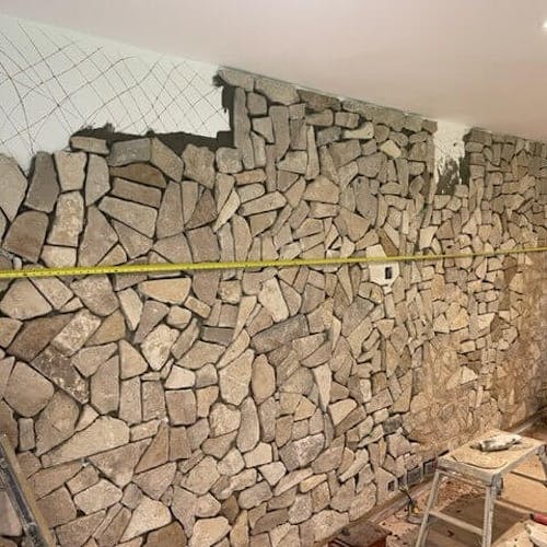 A classic cream‑to‑buff limestone with gentle tints of ochre and yellow, this material offers a warm, timeless aesthetic rooted in traditional masonry. Naturally hard and durable, it has long been favoured for building and walling applications where strength and longevity are essential. The tumbling process softens its edges and surface, giving each piece a subtly weathered, time‑worn character that enhances its authenticity. In a rubble‑build format, the stone is supplied in irregular shapes and random sizes, creating a relaxed, organic composition that feels both rustic and refined. Mortar colour further shapes the final appearance—lighter tones blend seamlessly for a soft, harmonious look, while mid‑tone or darker mortars introduce contrast and emphasise the individuality of each stone. Our natural Rubble Stone Cladding Slips are slim individual pieces of stone which has been cut from full thickness facing stone, the stone gets cut to a thickness of 15-30mm, giving the appearance of traditional stone walling when laid. Each piece of stone is unique in shape, height and length.