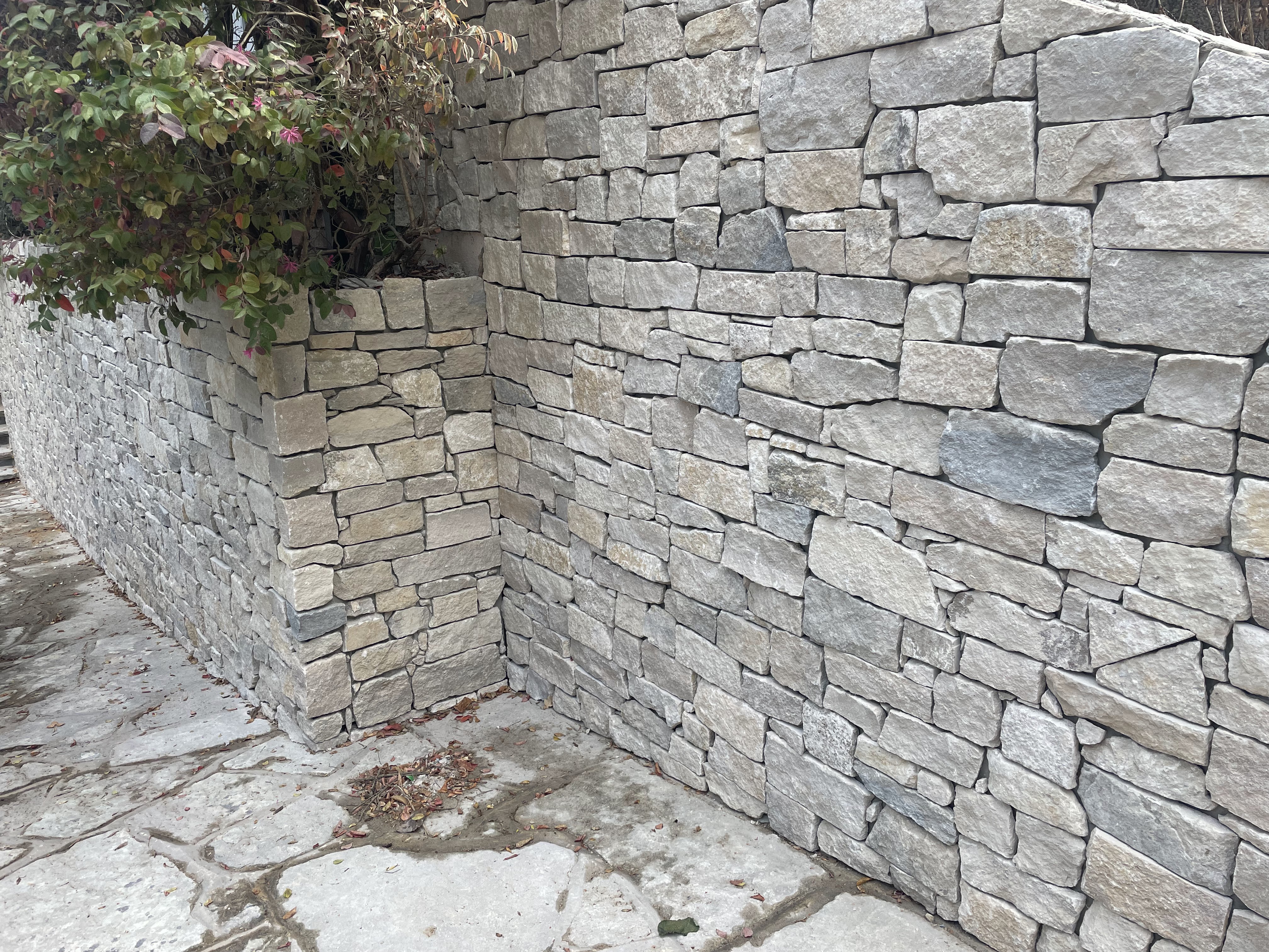 A rugged and strong fine-grained lias limestone with colours from buff to creamy white. This stone has a regal feel and lends itself perfectly to rural, suburban and coastal communities. A stone of choice for masons through the years, and now available in easy-to-lay slips. The pieces shown are set within a cream mortar but also work well with other coloured mortars, allowing the overall look to change to suit your application. The combination of real stone and tailored mortar creates a durable, character‑rich finish suited to both architectural and landscaping applications. Our natural Rubble Stone Cladding Slips are slim individual pieces of stone which has been cut from full thickness facing stone, the stone gets cut to a thickness of 15-30mm, giving the appearance of traditional stone walling when laid. Each piece of stone is unique in shape, height and length.