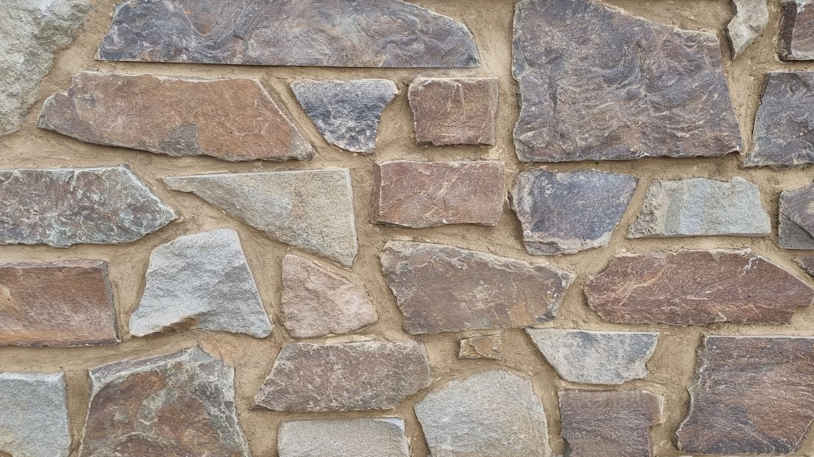 A limestone, sandstone mix which offers colours from reds, greys and buff with naturally occurring rusty tints.