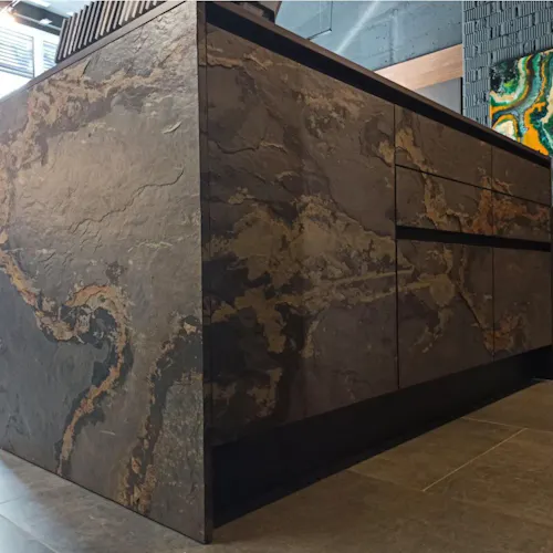 Decorativo is 100% real stone veneer that has multiple applications. Available in large 2440*1200mm sheet sizes (packed as 600's) and flexible enough to apply to curves. Use your imagination and create a real stone appearance in kitchens, bedrooms, bathrooms and leisure spaces. Decorativo is waterproof and heat-resistant, so it is ideal for shower cubicles, splashbacks and kitchen surfaces.
