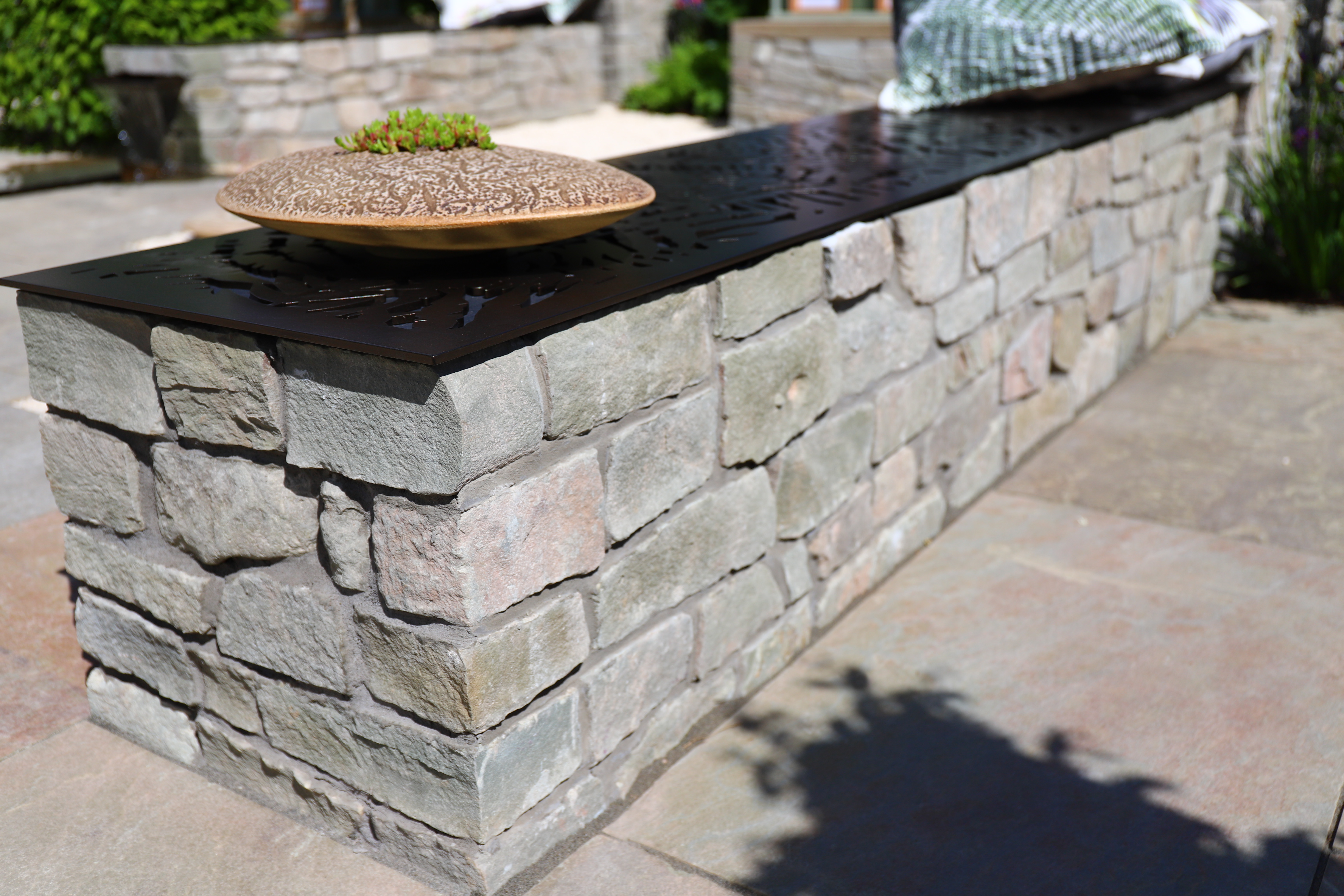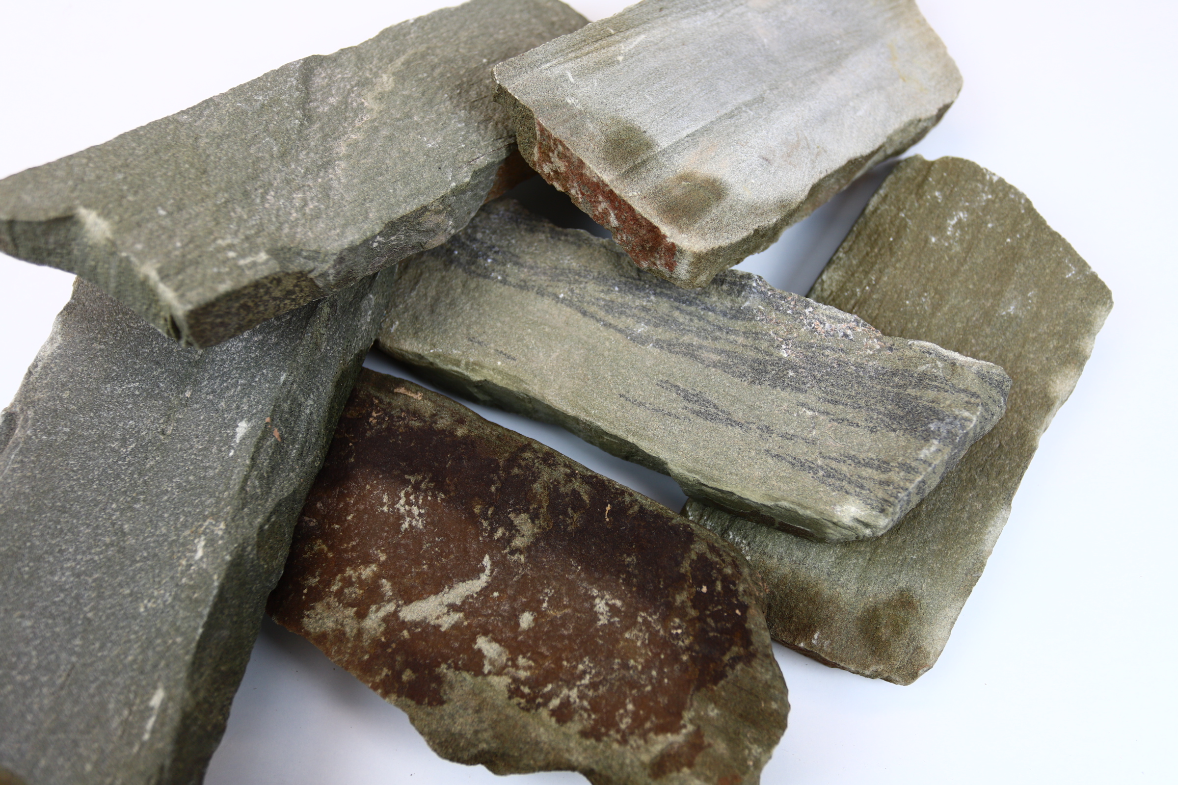 A fine grained traditional British sandstone. This green based mix includes hues from green-grey to silver-blue and buff/russet tones. Hard and durable, this vintage stone has have been used extensively by architects throughout history.