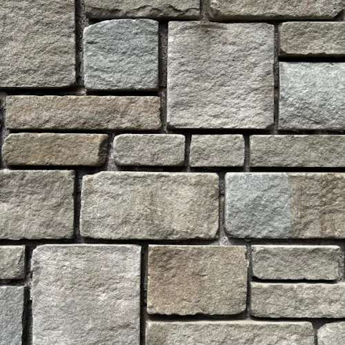 Grey‑green limestone is a stunning natural stone defined by predominantly light grey tones softened by gentle green undertones. Its natural texture gives it an understated, organic character, with lightly riven surfaces that introduce subtle variations across each piece. Hard and durable, this vintage sandstone has been used extensively by architects throughout history, valued for its longevity and timeless aesthetic. Together, these stones offer a palette that feels both contemporary and rooted in British architectural tradition. Mortar colour further shapes the final appearance: lighter mortars create a soft, blended look, while mid‑tone or darker mortars heighten contrast, emphasising the individuality, texture, and crisp outlines of each stone. Interior or exterior use. Coursed Stone Cladding Slips are cut from full-faced pieces of traditional coursed walling stone to a thickness of 15-30mm. Coursed cladding slips are formed into rectangular shaped stones sawn top and bottom in an architectural building style, typically with three set heights (ours are 65mm, 140mm and 215mm). L-shaped corners available.