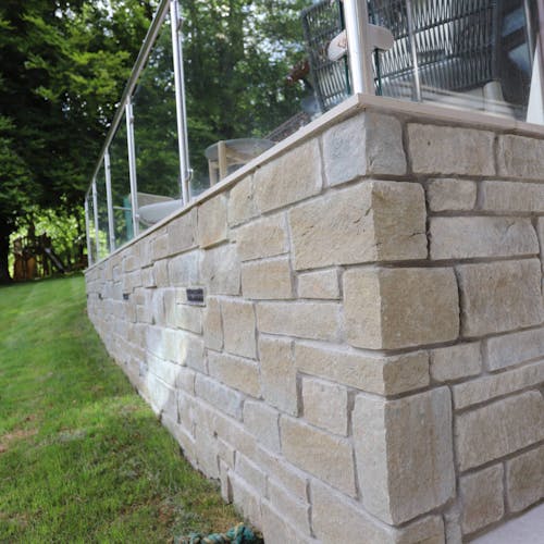 Grey‑green limestone is a stunning natural stone defined by predominantly light grey tones softened by gentle green undertones. Its natural texture gives it an understated, organic character, with lightly riven surfaces that introduce subtle variations across each piece. Hard and durable, this vintage sandstone has been used extensively by architects throughout history, valued for its longevity and timeless aesthetic. Together, these stones offer a palette that feels both contemporary and rooted in British architectural tradition. Mortar colour further shapes the final appearance: lighter mortars create a soft, blended look, while mid‑tone or darker mortars heighten contrast, emphasising the individuality, texture, and crisp outlines of each stone. Interior or exterior use. Semi Coursed Stone Cladding Slips are cropped in the semi-coursed build style, and cut to a thickness of 15-30mm for slim stone wall cladding. L-shaped corners available.