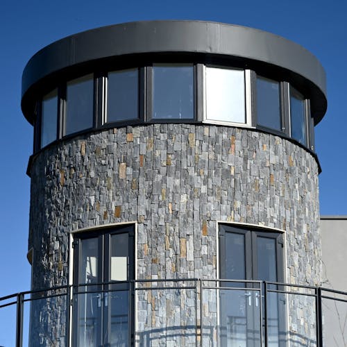 Real stone panel with a traditional cottage feel in grey hues, made from split faced real stone, available in rectangular "Z" forms with equal heights making it easy to use for cladding and can be used for both interior and exterior applications.