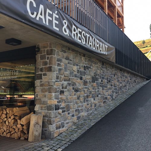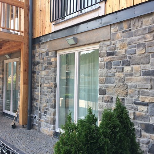 Inspired by Alpine architecture, Mix Alpina is designed to reflect the mountain environment. A combination of irregularly shaped stones with colours ranging from dark and light grey, earthy browns and light shades of purple is giving to the each stone its own story to tell.