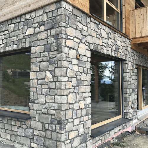 Mix Davos is inspired by earthy stone colours around of the Alps. It is characterised by very natural and irregular shapes. A versatile application for exterior and interior.